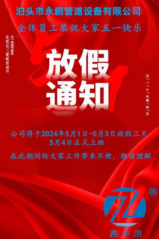 金屬補(bǔ)償器 管道膨脹節(jié) 非金屬補(bǔ)償器廠家五一放假通知-泊頭市永鵬管道